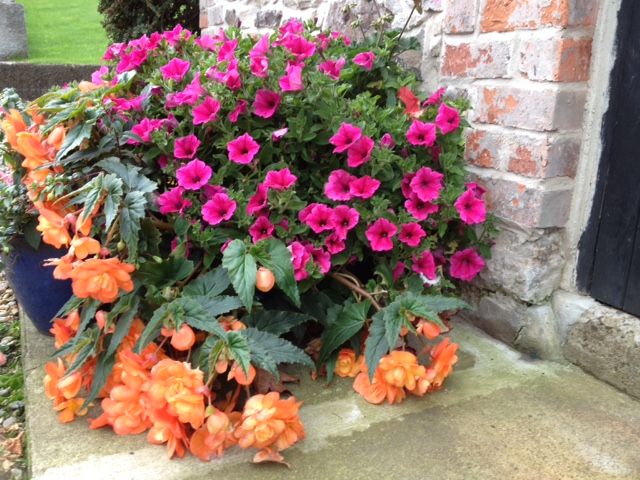 I thought I would share this photograph with you of my beautiful, trailing pink petunias which I planted in a tub at my back door. I bought them from Ivan McCutcheon at the market in June and they are still blooming well in late September.