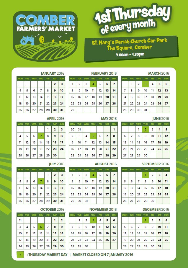 After the January break, we are looking forward to welcoming everyone back to the next Comber Farmers’ Market on Thursday 4 February 2016, St Mary’s Parish Church Car Park, 9.00am – 1.30pm.