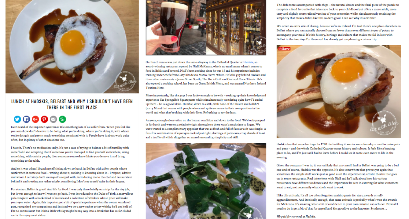 ‘LUNCH AT HADSKIS, BELFAST AND WHY I SHOULDN’T HAVE BEEN THERE IN THE FIRST PLACE’