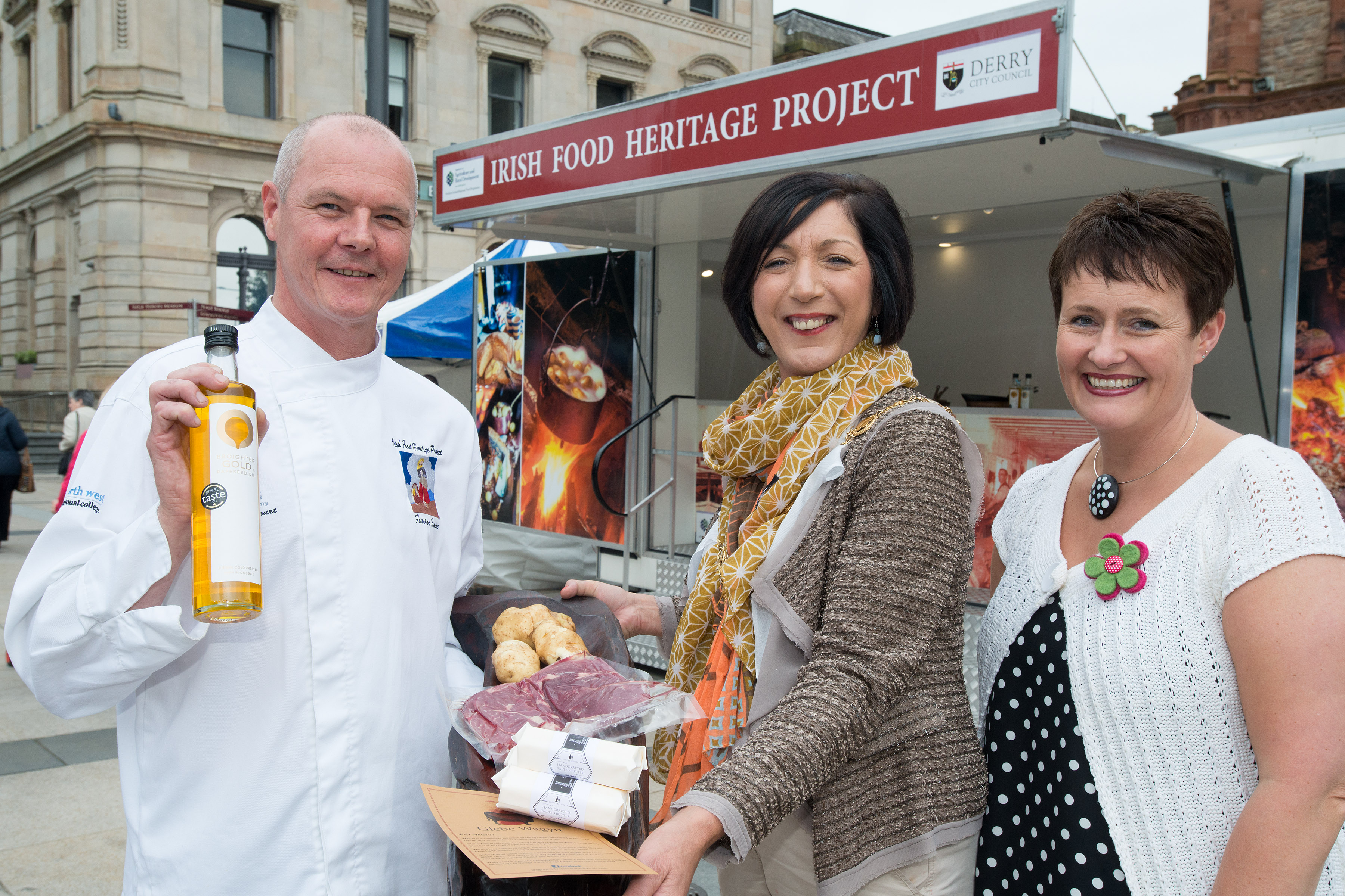 The Cookery Road Show is a new initiative funded by Department of Agriculture and Rural Development NI Regional Food Programme, Derry City Council and facilitated by the Old Library Trust. It introduces a new dimension to Irish Food Heritage Project led by Emmet McCourt and brings together live food demonstrations and local indigenous food suppliers.