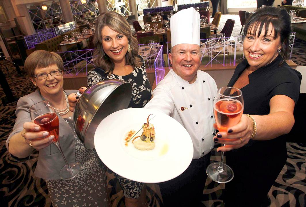 Friday 19th June 2015: UTV presenter Sarah Travers joined the team at the Killyhevlin Hotel last night to host a dinner to mark the launch of the hotel’s new restaurant, KOVE. The opening follows a £200,000 investment into the design of the restaurant which has been given a glamorous, contemporary Art Deco style make-over which takes full advantage of its unsurpassed views of Lough Erne.