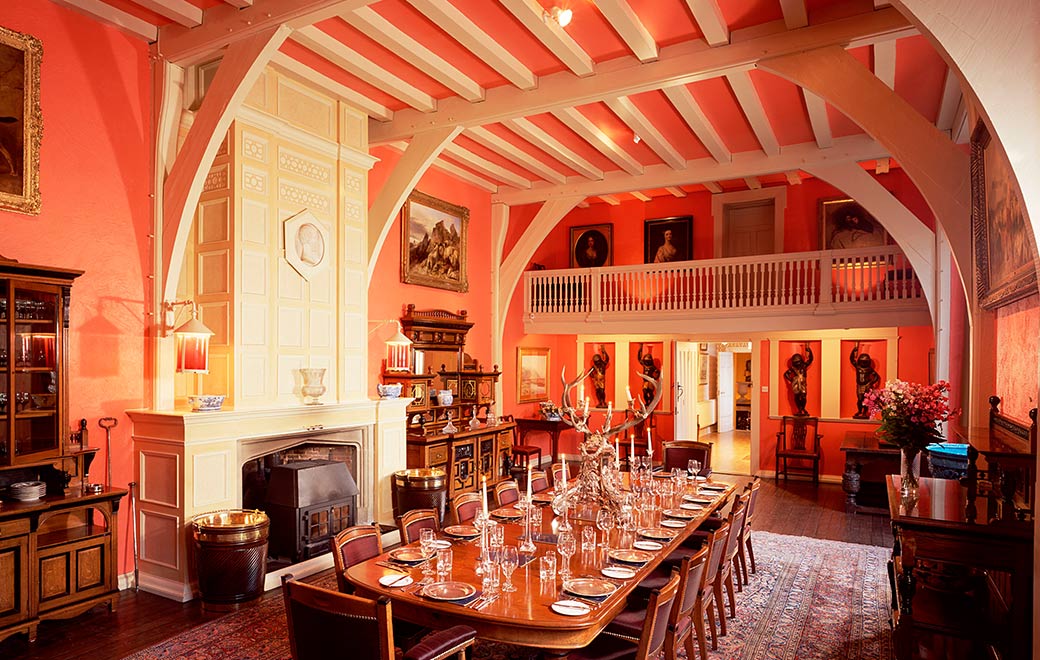 There is a warm and elegant family Drawing Room with an open fire place, and comfortable accommodation for everyone staying in the Castle. A great place to relax, unwind and enjoy each other’s company, with board games and maybe a glass of wine. With the option of the Grand Hall or the Long Gallery to dine in, take your pick each night! Whether you chose to cater for yourself or opt for us to provide the in-house catering during your stay, the Castle has a fully equipped and functional kitchen with a large AGA to warm your fingers and toes after a long walk!